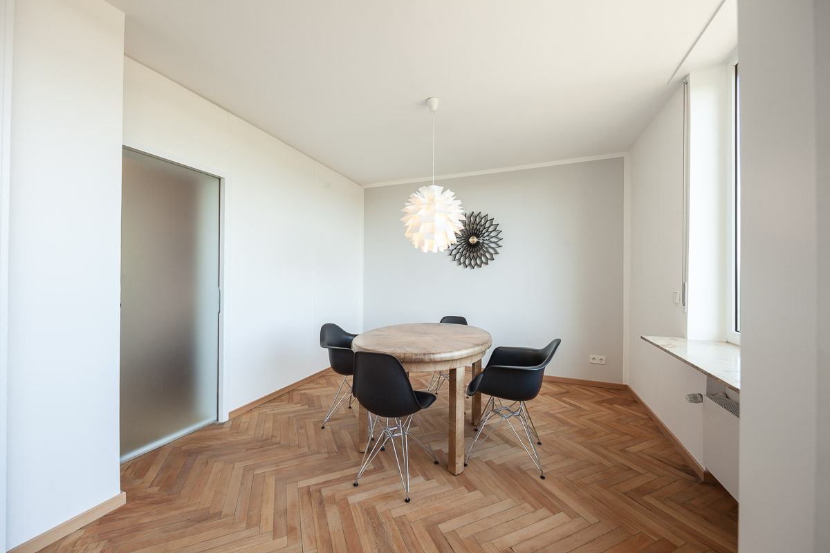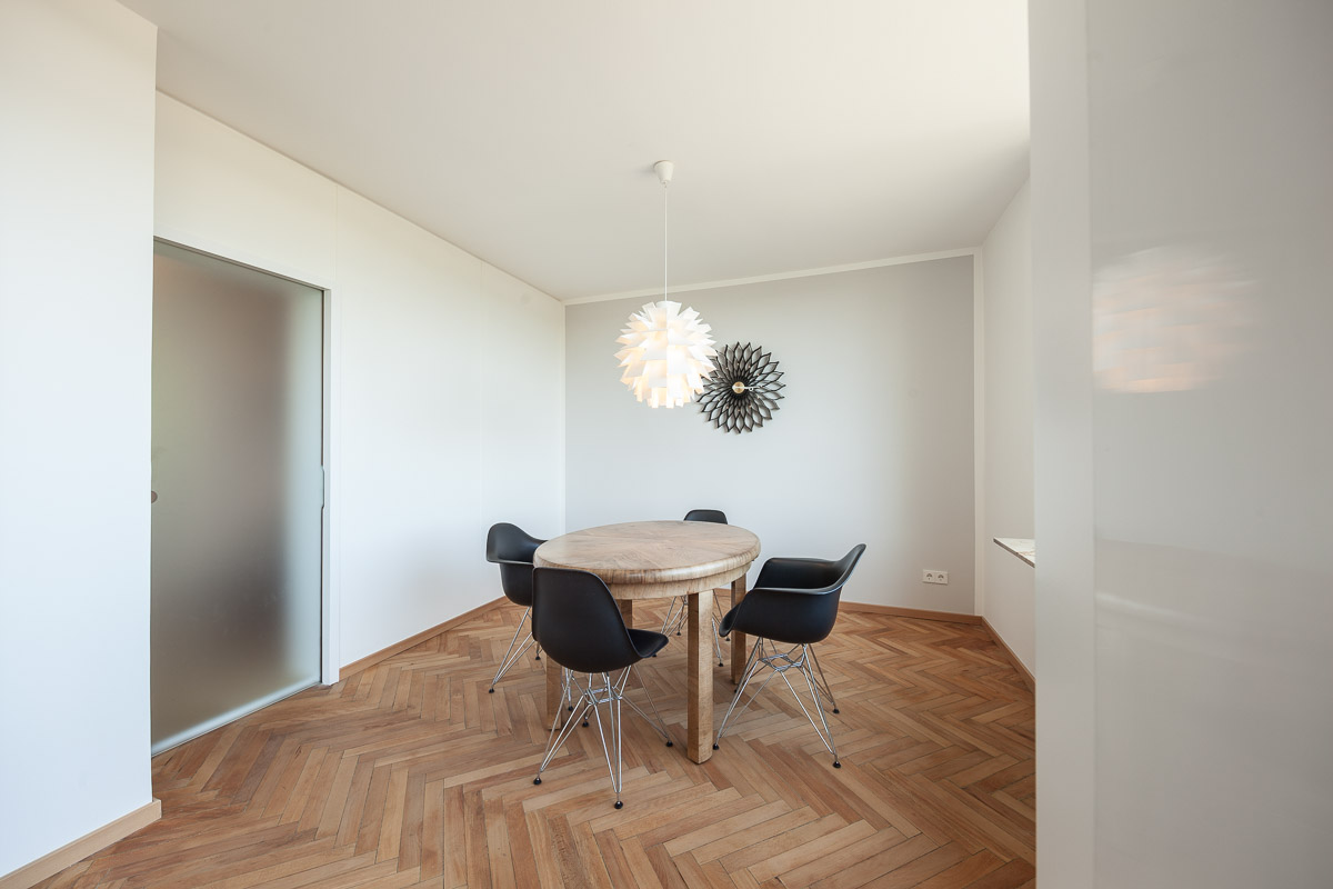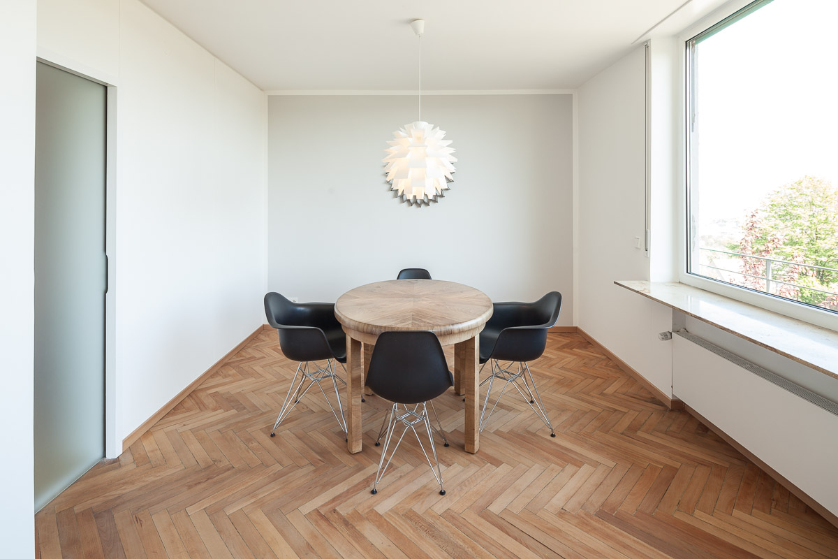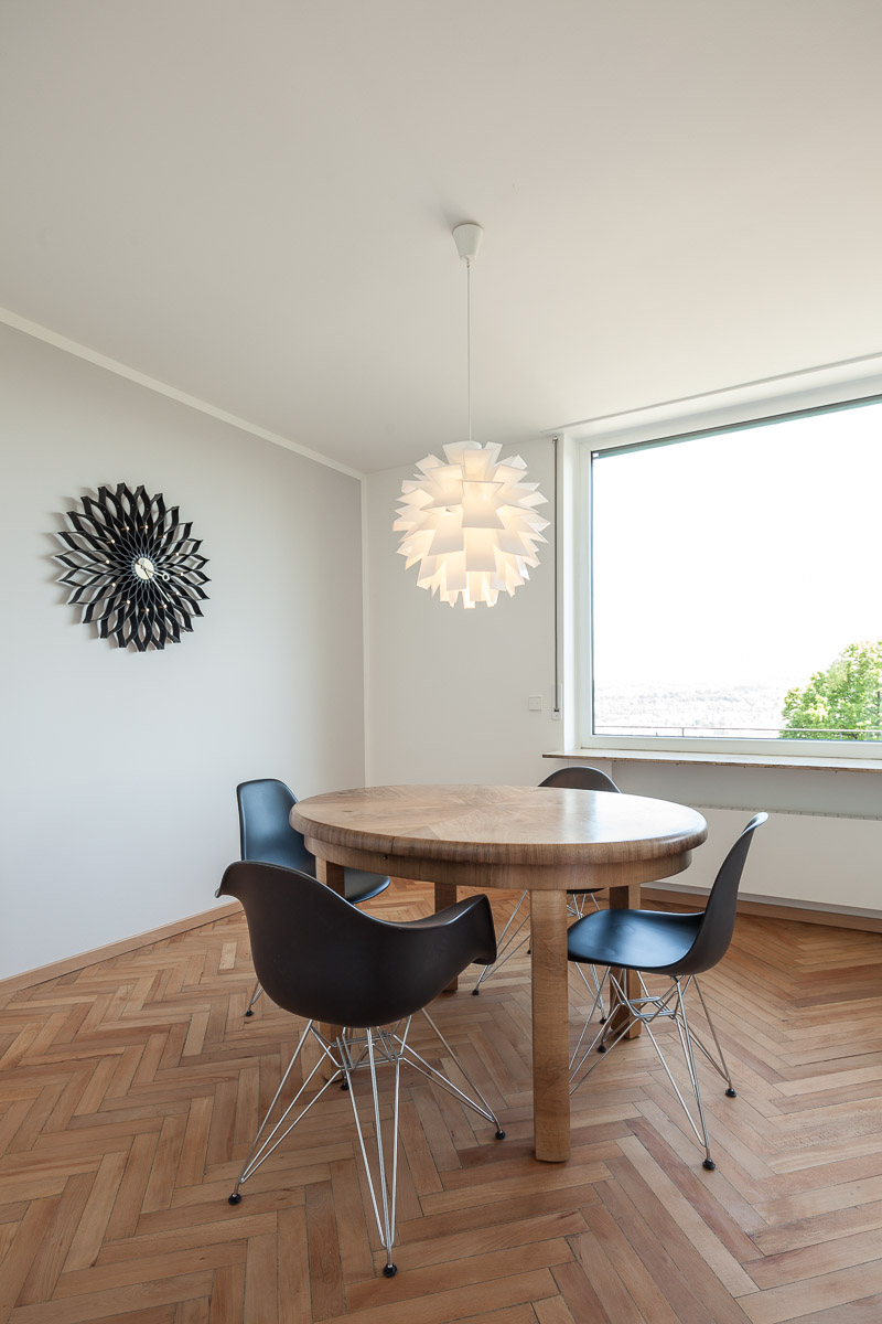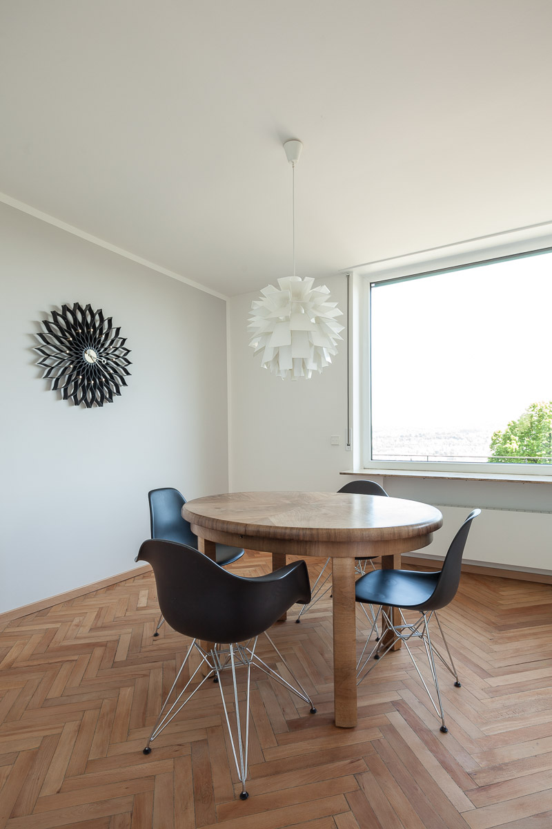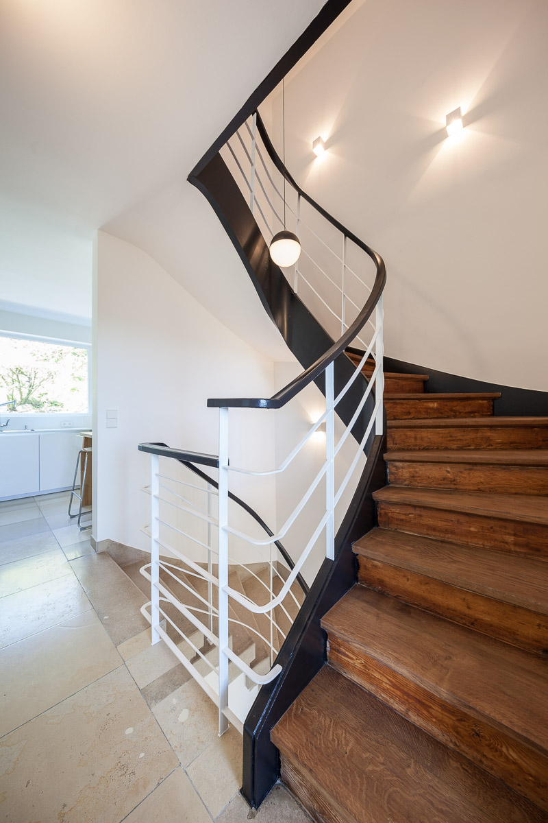 Ein Einfamilienhaus am Stuttgarter Killesberg, ursprünglich entworfen vom Architekten Ernst Otto Osswald, wurde mit großem Respekt vor der architektonischen Handschrift umfassend umgebaut und in die Gegenwart überführt. Ziel war es, die charakteristische Formensprache und Raumwirkung des ursprünglichen Entwurfs zu erhalten, gleichzeitig aber eine nachhaltige, zeitgemäße Wohnqualität zu schaffen. Die Grundstruktur des Hauses blieb weitgehend unangetastet, wurde jedoch durch gezielte Eingriffe geöffnet und funktional neu geordnet. Große Fensterflächen wurden energetisch verbessert, ohne den typischen Rhythmus der Fassade zu verändern. Im Inneren wurden Räume zusammengeführt, Sichtachsen verlängert und Lichtbezüge verstärkt. Hochwertige Materialien wie Holz und Kalkputz bringen eine natürliche Wärme in die klar gegliederten Räume. Technisch wurde das Gebäude vollständig erneuert – mit neuer Heiztechnik, optimierter Dämmung und modernen Installationen. Die Küche wurde als zentraler Ort des Familienlebens neu positioniert, der fließend in den Wohnbereich übergeht. Auch das Obergeschoss erhielt eine behutsame Reorganisation, die den ursprünglichen Charakter wahrt und zugleich neue Nutzungsmöglichkeiten eröffnet. Die Außenanlagen wurden in Abstimmung mit dem Gebäude neu gestaltet – schlicht, zurückhaltend und mit Bezug zur architektonischen Sprache des Hauses. Insgesamt entstand ein Haus, das seine Herkunft nicht verleugnet, sondern in einer zeitgemäßen Interpretation weiterlebt – klar, offen und von großer atmosphärischer Dichte.